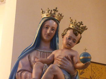 Il mattino seguente, nonostante le precauzioni prese, I’immagine non si trovò più nella cassa. E’ comune credenza che per la terza volta tentarono di chiudere la tegola in un ripostiglio insospettato, ma per la terza volta l’immagine tornò lassù, sul suo nespolo. Tanto i pastori che i parenti vicini compresero, a quel punto, che doveva trattarsi di qualcosa di superiore, di soprannaturale, di misterioso. Parlarono del singolare fatto in paese e con altri, forse tutto il popolo, andarono al nespolo nel quale Ia Madonna sembrava aspettare tutti. Si decise allora, di costruire, proprio in quel dirupo, una chiesa di culto e preghiera, e la tegola fu collocata lassù in una nicchia sopra l’altare dove si venera con molta devozione e Ia Madonna elargiva grazie con frequenza e generosità. Non si sa per quanto tempo l’immagine rimase in quel punto, quasi a guida e protezione dei viandanti che scendevano per quella pericolosissima strada scavata e sospesa su un precipizio che portava al guado del Rigo.