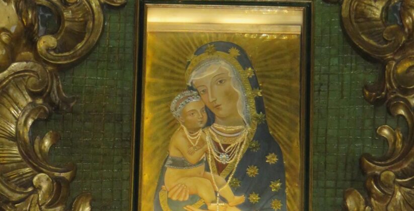 L’originale però andò distrutto da un incendio. Allora ne fu commissionata una copia al pittore Pietro Alemanno, con soddisfazione del popolo che non smise di venerarla. Proseguendo il tradizionale itinerario, l’immagine, alla conclusione, veniva riposta nella chiesa di S. Caterina, adiacente a quella di S. Venanzo. Passò quindi, nel 1921,alla chiesa di S. Maria della Carità (detta la Scopa).